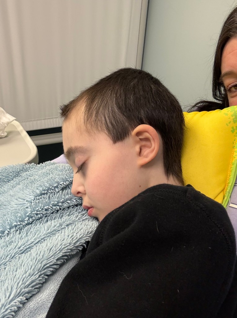 Last Friday we went for x ray the pneumothorax was gone. They did see a small infection said it could of been from not moving much because of the chest tube. Sunday we were in the ER he had a fever of 103.3 and a slight cough. The x ray that night looked good they gave antibiotics and nothing came back on the cultures or swob. His cough has gotten worse. Tuesday he started the new chemotherapy. Today they did more cultures, a nose swab and x ray. Gave him a dose of antibiotics. Todays x ray showed pneumonia. He is now on two new antibiotics and if his breathing changes we go to the ER. He can’t catch a break we just want our baby better and feeling back to himself and kick PPB cancer ass once and for all.